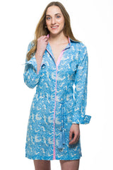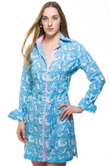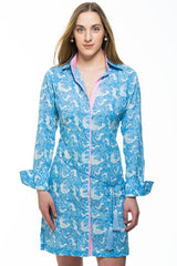 Perfect for all days this wear everywhere classic shirt dress is beautifully tailored and made of finest soft cotton. A hand embroidered motif on the back, contrast color cuffs and collar adds a timeless finish. Dress comes with a delicate tassel belt. Just tie at the waist to complete its effortless look!