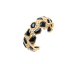 With a design nodding to the time of art deco, the Diya Cuff is a fresh and timeless piece. Adjustable, handmade, and studded with black agates and crystals, this is the must-have design of the season. A statement piece!