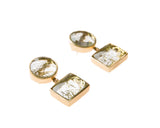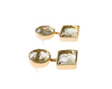 Our Anya earrings are an exquisite drop design with stunning geometric shaped stones. These are delicate post earrings framed in 18k gold plated setting.
