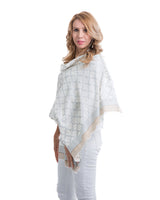 Stunning in both sky blue and deep pink, the Jupiter Shawl is fresh as it is functional. Lightweight cashmere with a stunning block window pane print, this shawl is the summer-meets-fall must-have this season. Perfect for keeping warm on cool mornings or during chilly evenings, throw this wrap over your shoulders at any time of day to ward off that unexpected nip of autumn! Stylish over any outfit, the Jupiter Shawl is the piece you need for an elegant and comfortable entrance into fall!