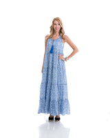 Timeless long tiered block printed summer dress that travels well. Pair with wedges or flats. Dress it up with your favorite Yatra jewelry or shawl on a cool evening.