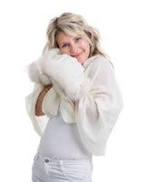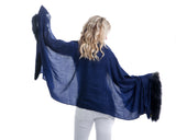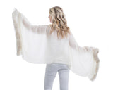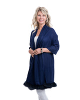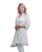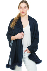 Stay warm and look fabulous in this luxurious fox fur trim cashmere shawl.