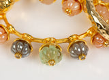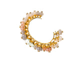 This cuff with 18K gold plating finish is the ideal accessory to a daytime outfit, thanks to its side opening it is easy to put on and take off. Its all-around stones features stones in a traditional watermelon cut and a vivid splash of rainbow colors which will compliment any outfit. Foundational for any stack and eminently wearable, this is a staple that will accompany you for the rest of your life.