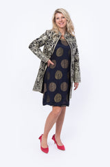 Simple, classic, and comfortable as they come, the Kota Dress is the perfect all season piece for all times and occasions! 100% cotton silk for comfort, lined for modesty, and decked out with brocade and hand-embroidery for glamour, this dress is easy to wear and stylish! With design touches that mix Indian wear with a ‘20’s american silhouette, the Kota Dress is perfect for spring flings, late-summer lunches, and autumn dinners. Style with a pair of sandals or boots for a stunning all-around look!