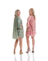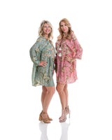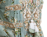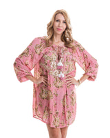 Stunning in either green or pink, the Pushkar Dress is the light, loose boho look for this season! Perfectly pelted, and made of printed cotton silk, this beautiful breathable dress will flit about you like a dream. Embellished with hand embroidered details on the front, with a light floral print complimenting the workmanship, this dress is truly beyond compare. Perfect for a brunch, a lunch by the lake, or sunset cocktails, this dress is styled simply with comfortable sandals or boots to bring a beautiful bohemian feel!