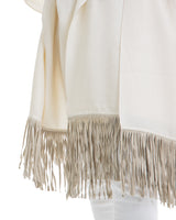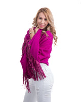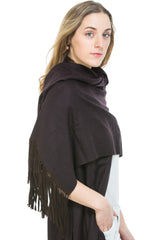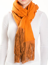 Add a boho chic touch to your wardrobe with this casual luxe suede shawl offered in several colors. Drape it as a full length shawl or wear it knotted around your neck for an effortless chic look on denim jeans or a dress.
