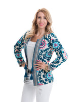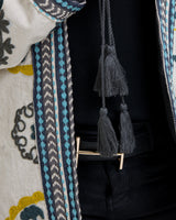 Ever wanted to revisit ‘70s fashion, but only the good parts? It’s all here for you in the sultry, psychedelic style of the Cali Jacket. Its classic pattern and colors will make you stand out in any crowd, and the lined, cotton design gives you both comfort and style in one. Light and hand-embroidered, this jacket is perfect for later summer as well as fall weather. Pair with a white pants or jeans, or wear over your favorite top for the simple, stylish Fall look you have been searching for.