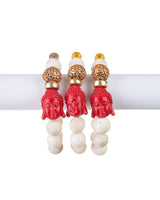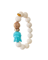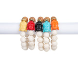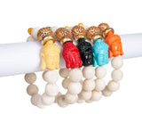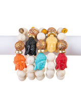 Our clients cannot get enough of the Buddha Bracelets. The PEACE Bracelets are one of our classic original styles, dating to the early days of Yatra. These gorgeous natural lava stones are a great foundational piece for stacking with your favorite bangles or bracelets. With its organic, textured surface this stretch bracelet is suited for casual, office or formal occasions. Wear it all day, everyday, it will become a part of you. The colored Buddha head adds a dash of welcome color and movement to your bangle stack.