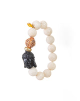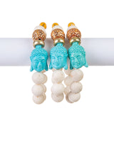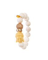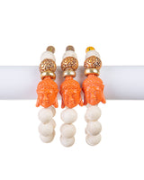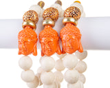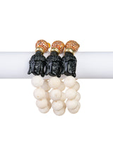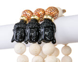 When worn the black or white polished lava beads are hand-strung together to increase your inner energy. The Buddha head is a symbol of peace and happiness. The bracelets are best worn on the left hand to attract good health and wealth. The Tibetan 18k gold dipped prayer beads are used by monks in their rosary and signify spiritualism. These bracelets have been created to balance the emotions and bring about calmness and provide strength.