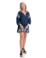 If you’ve been looking for something chic and easy to throw on and go, the Salem Dress is the piece for you! Whether over your bathing suit, as a mini dress, or with a pair of shorts or tights, this dress is versatile, comfortable, and easy to style. Made of cotton silk, it is breathable and moves with a graceful, airy quality. Its beautiful hand-embroidered details along the sleeves and across the bottom of the skirt, and its simple, classic design will make you fall in love in no time. Perfect for any occasion, this dress is the must-have staple of the season!