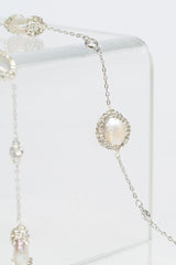 This necklace is truly one for the ages! Both delicate and conspicuous, the Elsa Flat Pearls necklace is the perfect glamour piece for any season. With its white gold chain decorated with Swarovski crystals, this freshwater pearl necklace is not only gorgeous but a timeless classic! Wear at its full length, or double for a more gathered look.