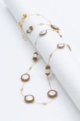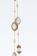 This necklace is truly one for the ages! Both delicate and conspicuous, the Elsa Flat Pearls necklace is the perfect glamour piece for any season. With its gold chain decorated with Swarovski crystals, this freshwater pearl necklace is not only gorgeous but a timeless classic! Wear at its full length, or double for a more gathered look.