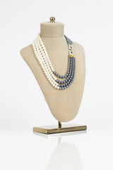 - Four rows of white & grey shell pearls