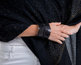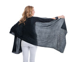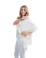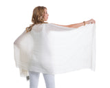 Embellished with gold & silver Swarovski work, the Ethereal Shawl combines the practical with the glamorous for the perfect evening wrap. Lightweight cashmere with perfectly placed accents of sparkle, this must-have piece is ideal for both warmth and elegance. Wear in either white or black over whatever look you wish for an eye-catching ensemble.