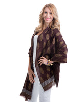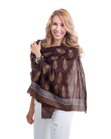 Available in Winter White, Navy, Chocolate, and Turquoise, the Labelle Shawl is made to fit your fashion wants and needs! Lightweight cashmere, with a golden pineapple motif, this wrap is the perfect mix of warmth and elegance. Fresh and fabulous, with a geometric border, the Labelle Shawl is what you need to complete your evening look! Wear over your favorite outfit at any chilly moment for the maximum mix of comfort and style.